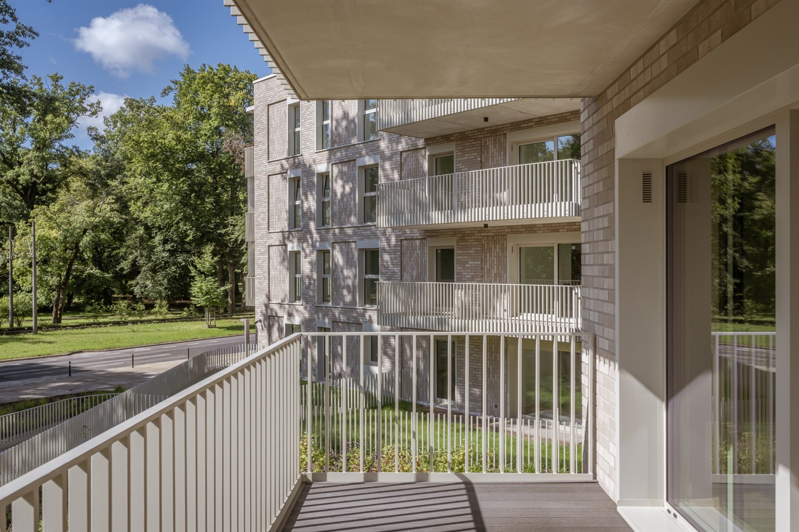 Architektura inwestycji jest nowoczesna, elegancka i ponadczasowa. Duże przeszklenia otwierają wnętrza na zieleń, tarasy i balkony naturalnie przedłużają przestrzeń mieszkań, a wybrane apartamenty oferują prywatne tarasy dachowe – rzadkość nawet w tej części miasta. To rozwiązania, które realnie podnoszą komfort życia i wyróżniają projekt na tle konkurencji.