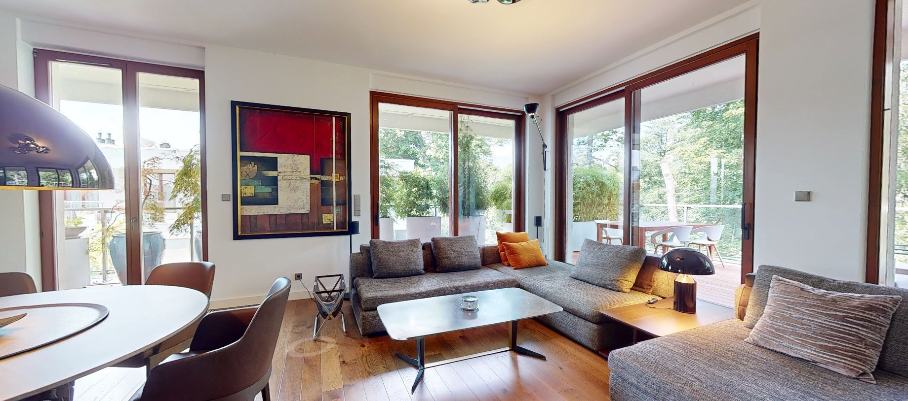 Apartament składa się z czterech przestronnych pokoi, urządzonych z dbałością o każdy szczegół. Luksusowe wyposażenie wiodących marek meblowych, takich jak Molteni, Rimadesio, czy Poggenpohl, podkreśla prestiż tego miejsca.