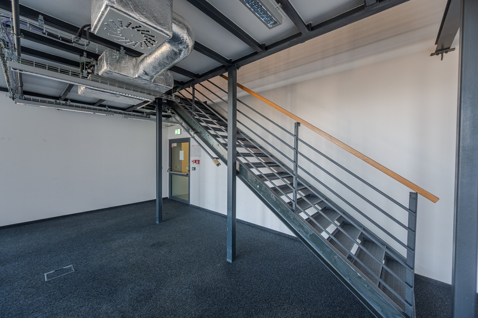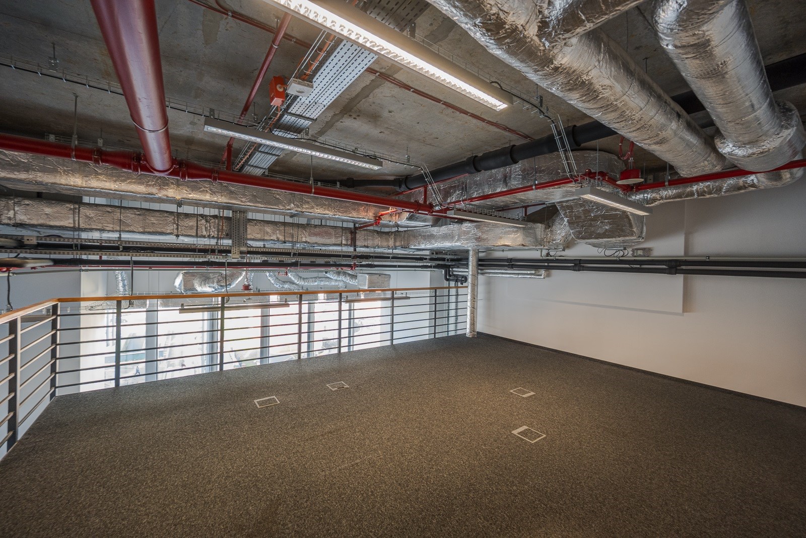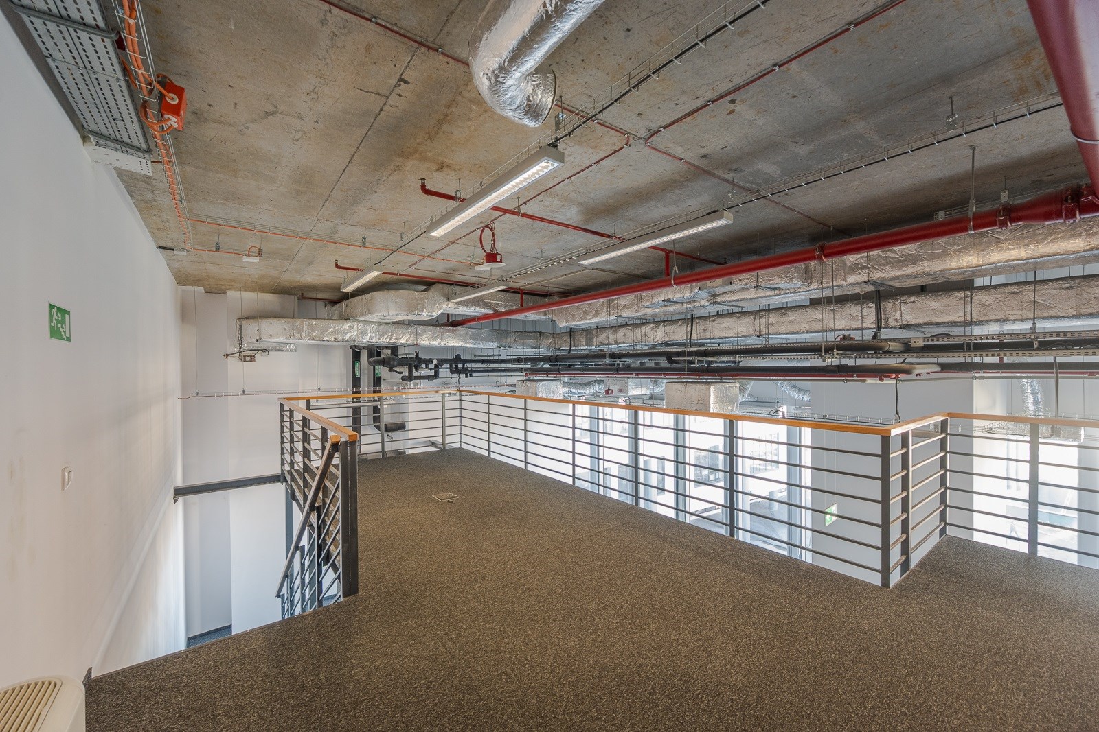Atutem lokalu jest również antresola, która może zostać wykorzystana jako strefa relaksu, przestrzeń konferencyjna lub dodatkowe stanowiska pracy.