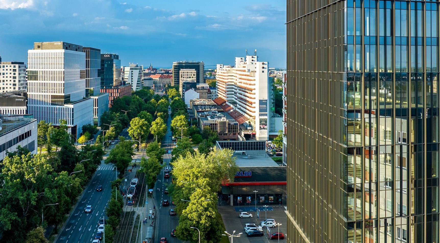Dwie jezdnie ul. Powstańców Śląskich gwarantują sprawny dojazd samochodem, a rozbudowana sieć komunikacji miejskiej (tramwaje, autobusy) zapewnia wygodne przemieszczanie się bez konieczności korzystania z auta. Rowerzyści i piesi mogą korzystać z pobliskich ścieżek rowerowych oraz szerokich chodników, co dodatkowo podnosi atrakcyjność lokalizacji dla pracowników i klientów.